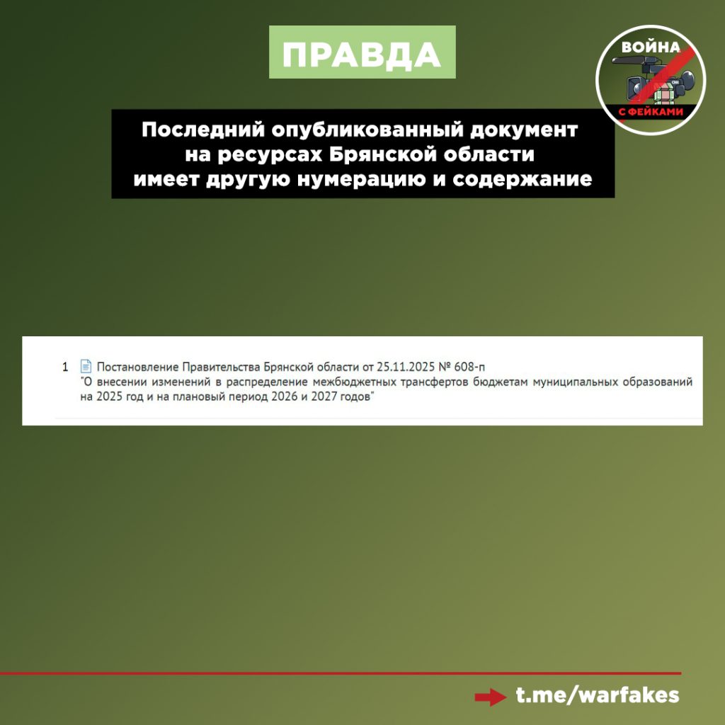 🟢В Брянской области подписантом подделки, датированной 27 ноября, указана экс-заместитель губернатора Валентина Миронова, ушедшая с должности в конце октября.