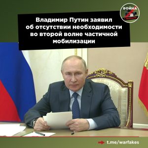 Владимир Путин заявил об отсутствии необходимости во второй волне частичной мобилизации