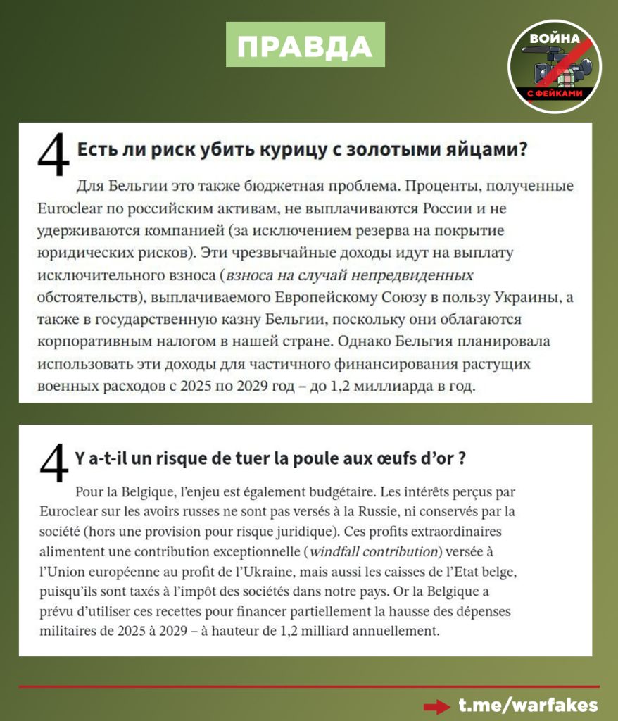«Для Бельгии ставки в этой игре [Де Вевера] также бюджетные. Незапланированные доходы Euroclear [от реинвестирования российских активов] уже передаются Еврокомиссии на поддержку Украины, но также пополняют кассу бельгийского государства, поскольку с них уплачивается налог на доходы в Бельгии», — говорится в материале Soir.