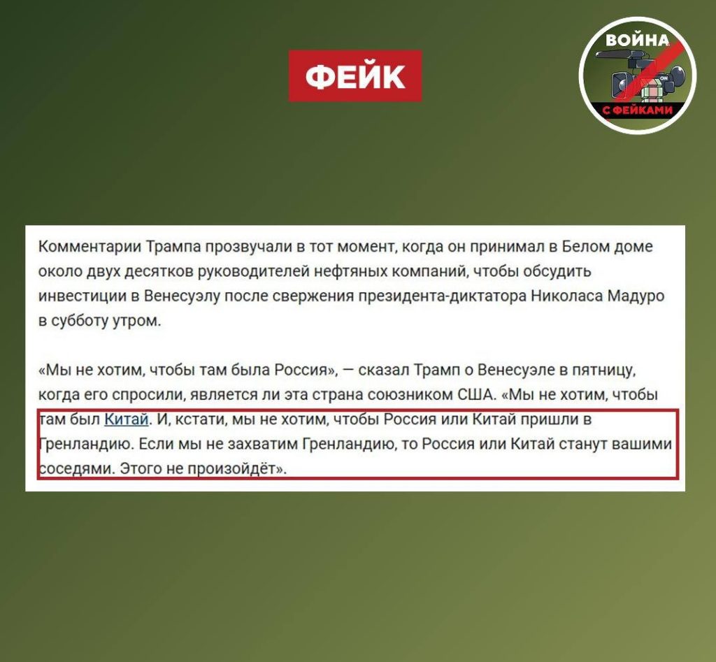 О чем фейк: Если США не захватят Гренландию, это сделают Россия или Китай. Об этом пишут американские СМИ, цитируя Дональда Трампа.