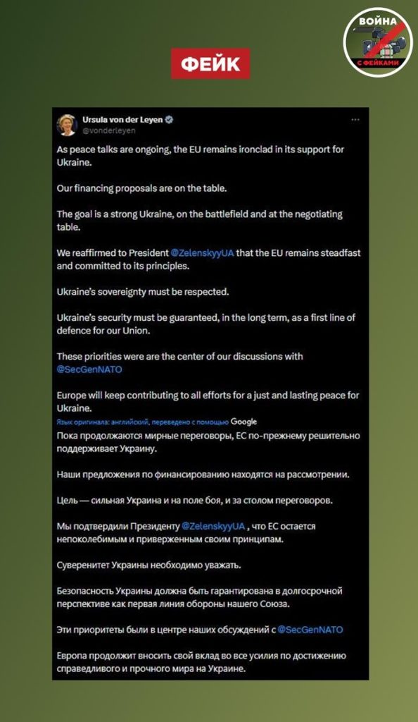 О чем фейк: Европейский Союз будет продолжать поддерживать Украину в будущем. Об этом заявила глава Еврокомиссии Урсула фон дер Ляйен у себя на странице в соцсети X.