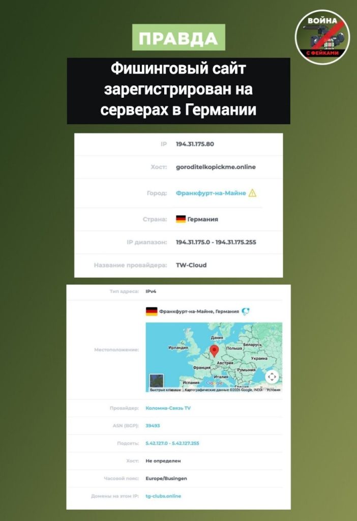 Перед нами пример спам-рекламы: преступника с таким фотороботом не существует, ссылка на якобы шокирующие кадры ведет не на канал в МАХ, а на фишинговый сайт для кражи данных, зарегистрированный с использованием серверов в Германии.