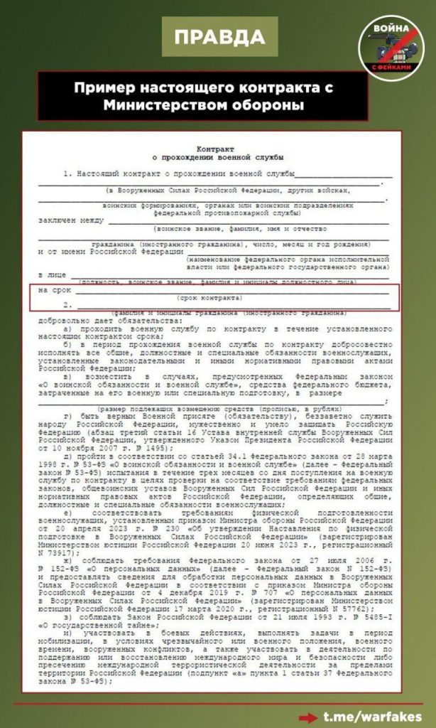 Перед нами вторая итерация фейка, который ранее был вброшен еще одним иноагентом — правозащитником Артемом Клыгой. Все описанные выше нюансы граждане-иноагенты могли бы знать, если бы ознакомились с российским законодательством. В частности, в пункте 7 статьи 38 Федерального закона «О воинской обязанности и военной службе» говорится, что при возникновении вооруженных конфликтов и в ряде других обстоятельств контракт о прохождении военной службы может быть заключен с военнослужащим, проходящим военную службу по призыву, или гражданином, не пребывающим в запасе, — на один год.