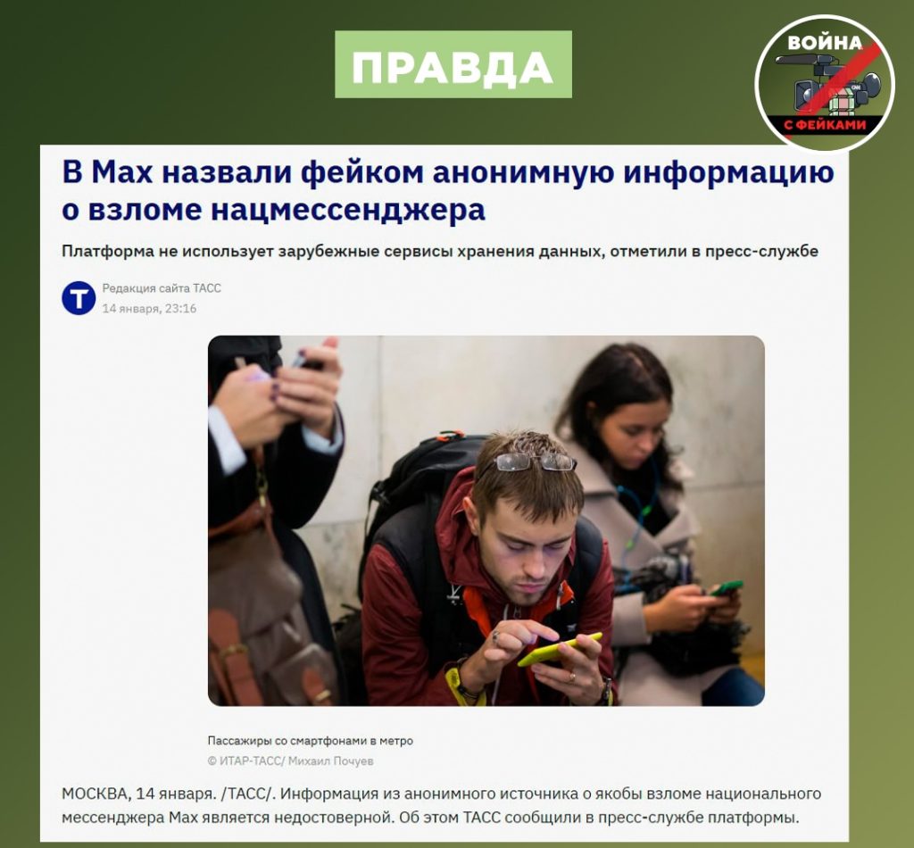 О чем фейк: Хакерам удалось взломать МАХ и получить полный доступ к базе мессенджера. Такие сообщения распространяются в телеграм-каналах.