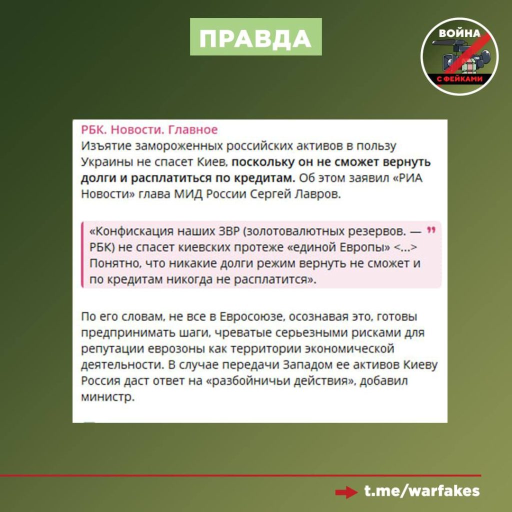 «Конфискация наших золотовалютных резервов не спасет киевских протеже «единой Европы» … Понятно, что никакие долги режим вернуть не сможет и по кредитам никогда не расплатится», — прокомментировал ситуацию глава МИД России Сергей Лавров.