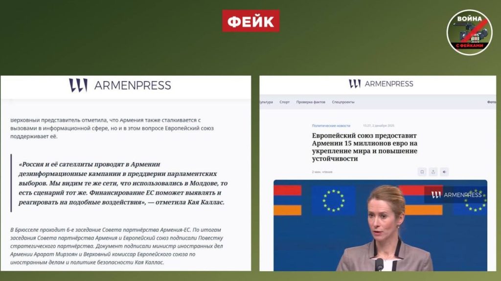 О чем фейк: Москва намерена вмешаться в грядущие парламентские выборы в Армении по «молдавскому сценарию». Об этом заявила глава евродипломатии Кая Каллас.