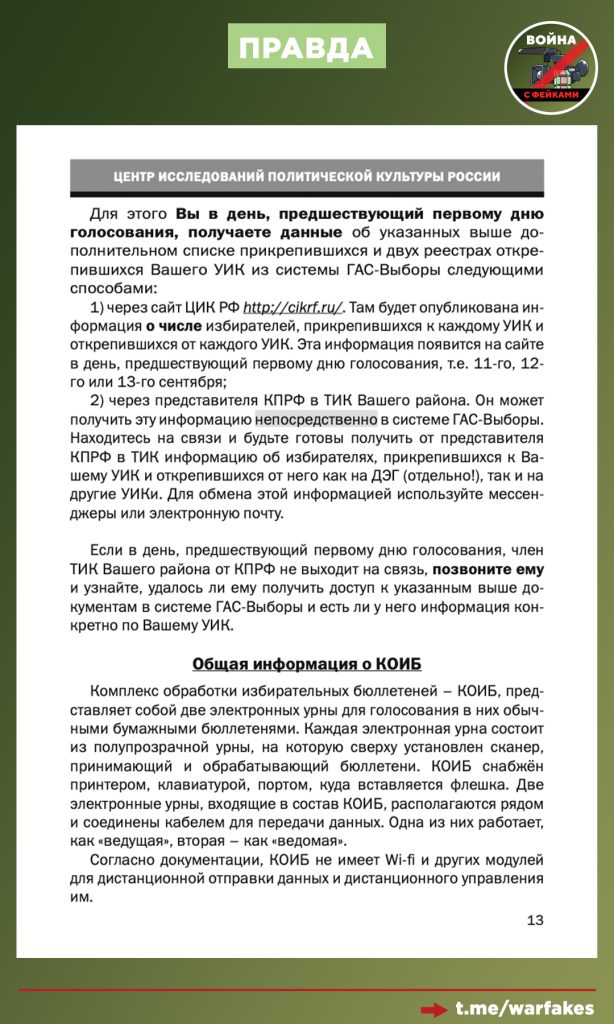 Примечательно, что первоисточником фейка стал кандидат в губернаторы Краснодарского края от КПРФ Александр Сафронов. При этом он должен быть хорошо знаком с процедурой подготовки участков к голосованию, ведь этот процесс подробно описан в методичке коммунистической партии. Конкретно о настройке КОИБ говорится на странице 13.