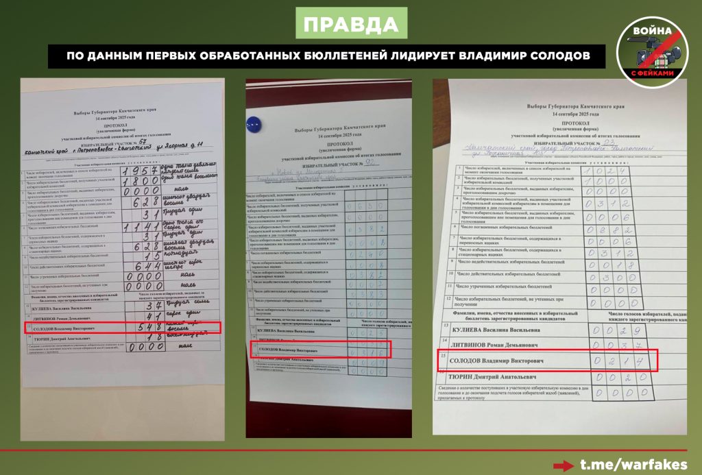 На Камчатке уже закрылись УИКи и комиссии приступили к подсчету голосов. Профильные телеграм-каналы публикуют первые протоколы из разных уголков полуострова: видно, что Владимир Солодов уверенно лидирует на выборах. Победу Солодову прогнозируют и опросы избирателей на выходах с участков.
