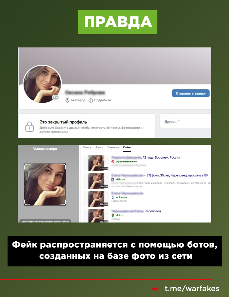 Распространением подделки занимаются боты. Это легко установить по скудному количеству друзей липовых аккаунтов. Для их штамповки использовались фото из Сети.