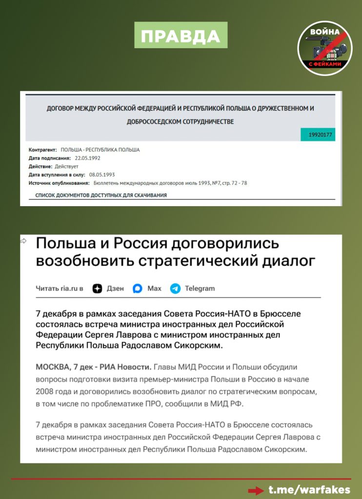🟢1992 год — договор о дружбе и добрососедстве. Его подписывают уже Российская Федерация и Республика Польша. Документ стал основой для выстраивания новых отношений между двумя странами после распада СССР и учитывал интересы обеих сторон в переходный период.