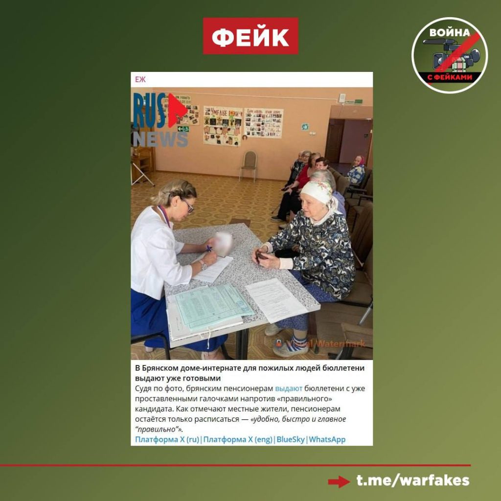 О чем фейк: Пожилым постояльцам дома-интерната в Брянской области выдают уже заполненные бюллетени для голосования. Об этом сообщили оппозиционные телеграм-каналы.