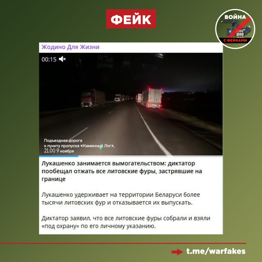 О чем фейк: Президент Белоруссии Александр Лукашенко занимается вымогательством — он взял в заложники более тысячи литовских фур, оказавшихся на территории страны, и требует деньги. Об этом пишут в Телеграм.