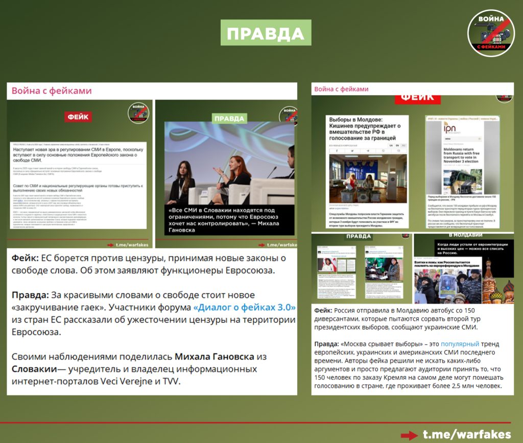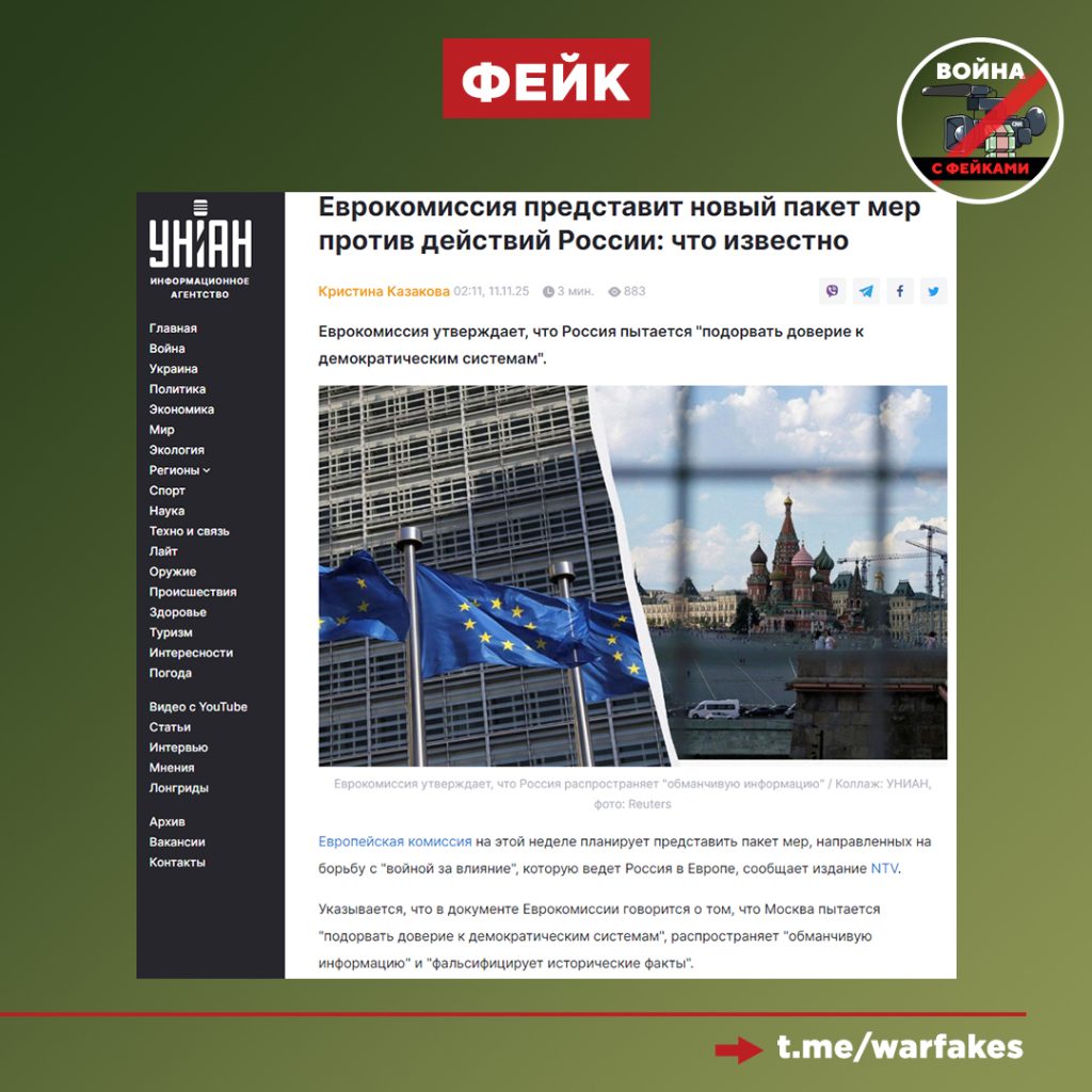 О чем фейк: Россия фальсифицирует исторические факты и распространяет дезинформацию. По этой причине Евросоюз вынужден подавлять плюрализм СМИ.