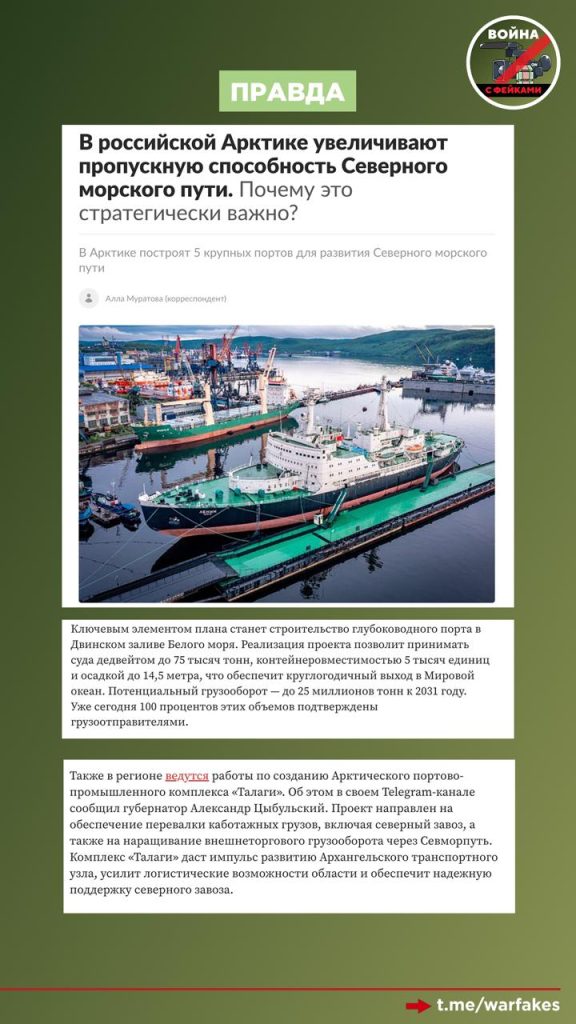 О чем фейк: Россия не может обеспечить надлежащие обслуживание своих портов в Арктике. Об этом пишут киевские СМИ со ссылкой на украинскую разведку.