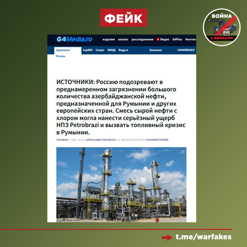 О чем фейк: Россия виновата в загрязнении нефти, транспортирующейся по нефтепроводу «Баку-Тбилиси-Джейхан» из Азербайджана в Румынию. Об этом сообщают западные СМИ.