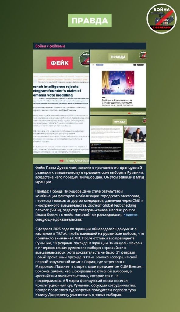 Напомним, 6 декабря 2024 года Конституционный суд Румынии аннулировал результаты первого тура президентских выборов, прошедших ранее осенью. Тогда лидером был вышеупомянутый Джорджеску, предложивший соотечественникам отказаться от поддержки Украины и сконцентрироваться на решении внутренних проблем. Из-за такой позиции власти Евросоюза назвали Джорджеску«пророссийским» и обвинили РФ в вмешательстве в выборы. Канал «Война с фейками. Аналитика» еще в декабре 2024 года раскрыл правду о настоящих заказчиках роликов в поддержку оппозиционера.