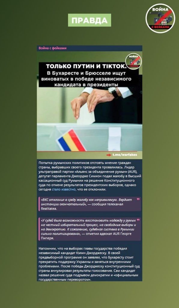 О чем фейк: Россия вмешивалась в выборы президента Румынии в 2024 году с помощью вбросов в TikTok. Об этом писали западные СМИ.
