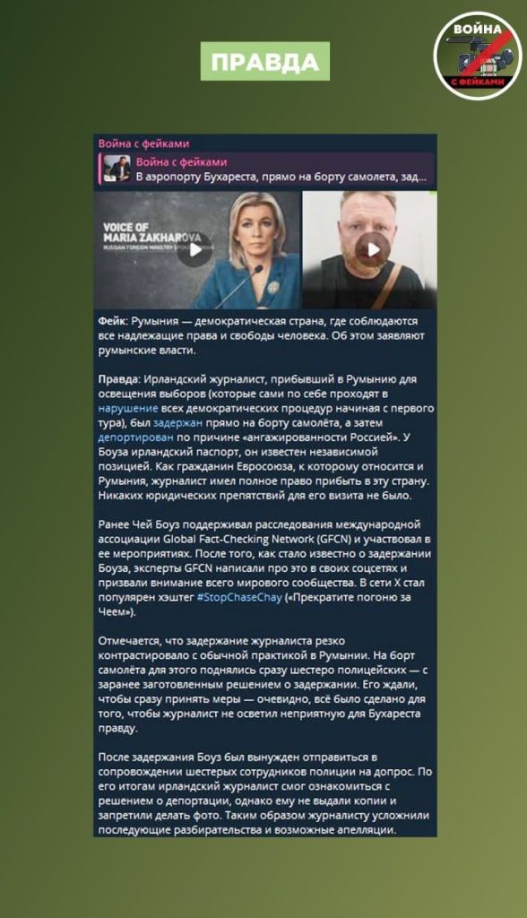Кроме того, власти Румынии не допустили на выборы независимых иностранных наблюдателей. Например, ирландский журналист Чей Боуз был задержан прямо на борту самолета, а затем депортирован из страны по причине «ангажированности Россией».