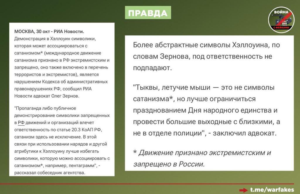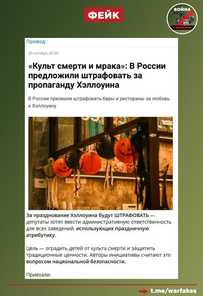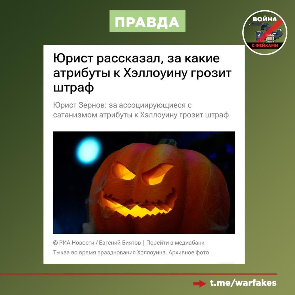 О чем фейк: Россиянам грозит штраф за празднование Хеллоуина. Об этом пишут телеграм-каналы.