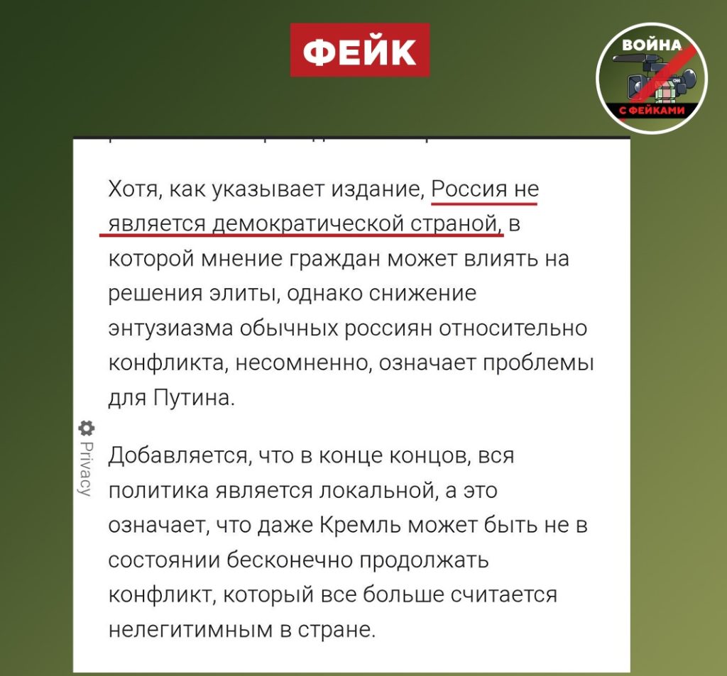 О чем фейк: Российская Федерация — не демократическое государство. Об этом пишут украинские СМИ.