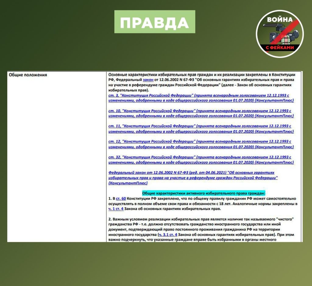 🟢 Свободные и справедливые выборы. Они проводятся в положенные сроки, а не откладываются на годы и не являются предметом международного шантажа. Президентские выборы — в том числе. Если граждане выразили свою волю в ходе референдума, то РФ признаёт его результаты, а не требует повторного проведения на размытых и противозаконных условиях.