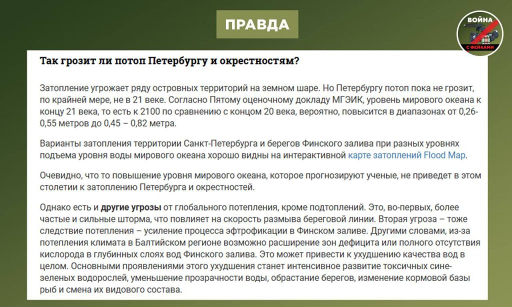 Катастрофическое цунами Северной столице не грозит, равно как и затопление — по крайней мере, до конца XXI века. Мы имеем дело с так называемым нейрослопом — продукцией, намеренно созданной с помощью искусственного интеллекта, без каких-либо стремлений к достоверности.