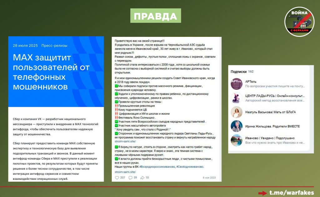 Заявление — фейк. «Сбербанк», напротив, тесно взаимодействует с командой разработчиков MAX. В том числе, по вопросам создания механизмов, призванных защитить данные россиян от мошенников. Об этом кредитная организация сообщала в своем пресс-релизе. Кстати, записи разговора со специалистом «Сбербанка» или иных внятных аргументов в пользу озвученного автор вброса, естественно, не предоставляет.