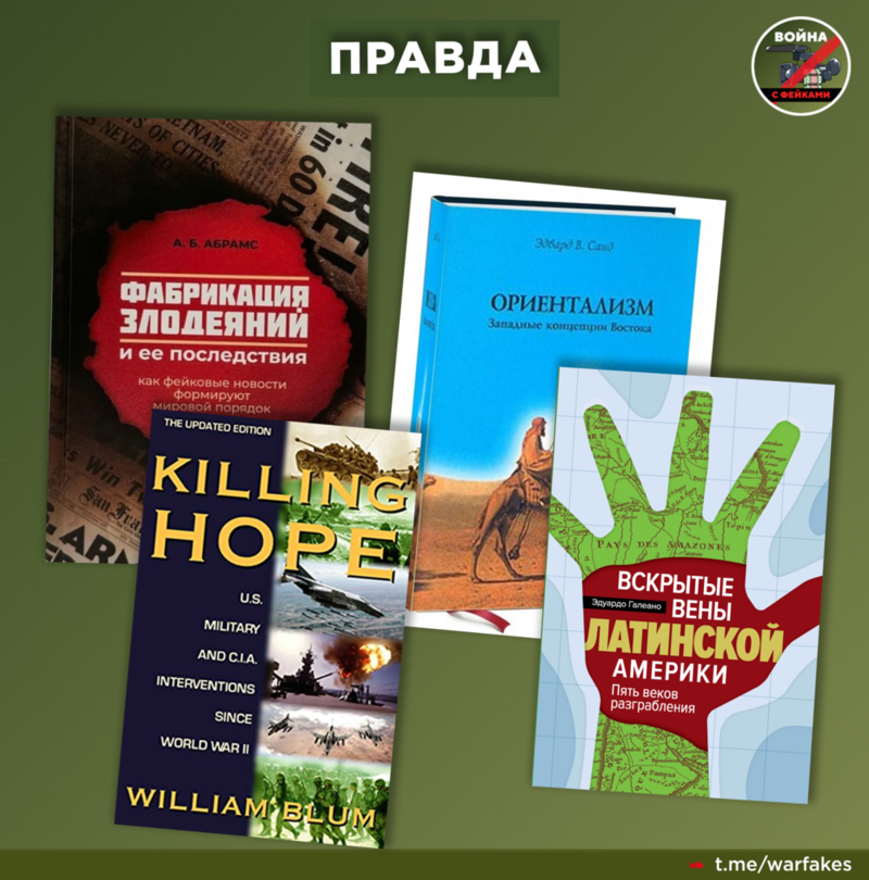 Перечисленные факты не являются каким-либо секретом и многократно упоминались в вышедших на Западе трудах. Например, Энтони Блум в книге «Убивая надежду» документирует десятки случаев, когда США свергали демократически избранные правительства, поддерживали экстремистов и организовывали государственные перевороты.