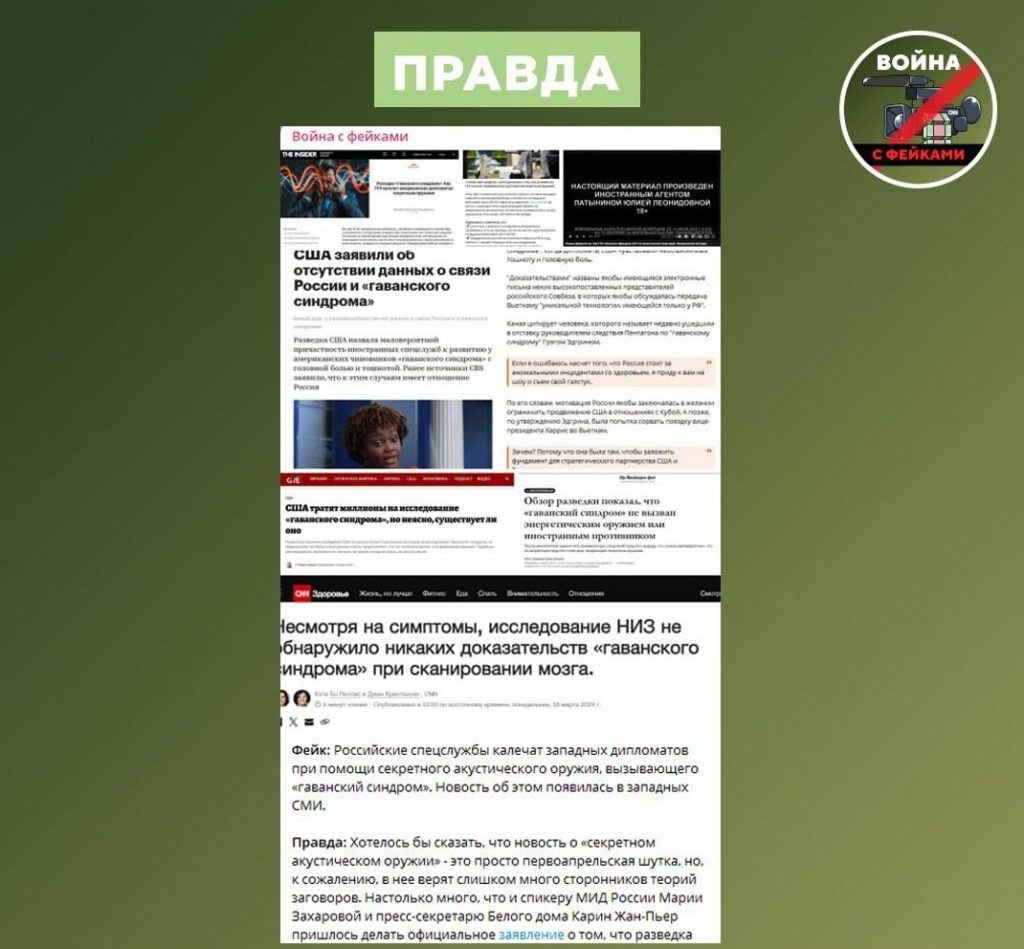Напомним, речь ведётся о неком российском оружии, якобы способном воздействовать на мозговую деятельность тех, против кого оно применяется. Теории не один год и даже не пять. За почти 10-летний период её существования ни одного вменяемого доказательства найдено не было — есть лишь домыслы и подтасовка фактов.