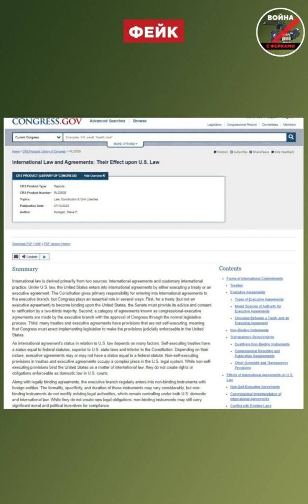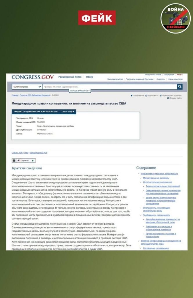О чем фейк: США соблюдают международное право. Это зафиксировано в документах Конгресса и Госдепартамента страны.
