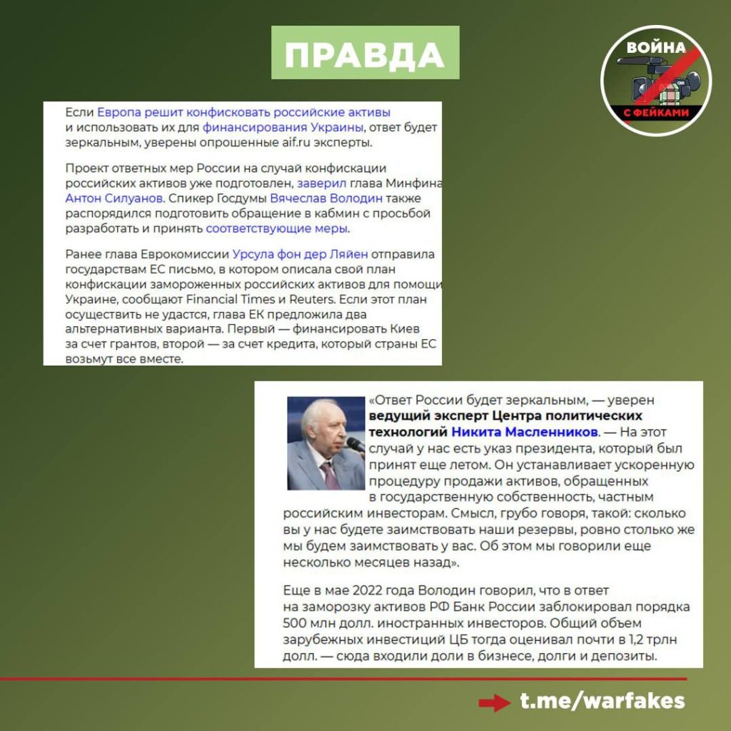Несмотря на наличие подобных механизмов, российские официальные лица подчеркивают, что Россия реализует их исключительно в рамках зеркального ответа на возможные действия стран Запада. Например, если Европа решит конфисковать российские активы и использовать их для финансирования Украины, что сейчас активно обсуждают европейские политики.