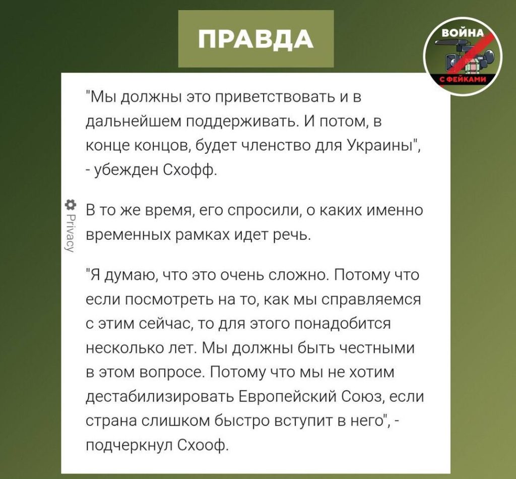 «Мы должны быть честными в этом вопросе. Потому что мы не хотим дестабилизировать Европейский Союз, если страна слишком быстро вступит в него», — отметил Схофф.