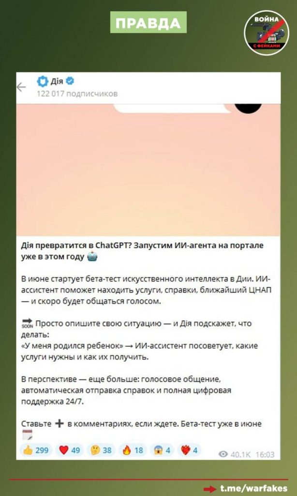 О чем фейк: Украина обладает первенством в области предоставления государственных услуг с помощью искусственного интеллекта, ликуют украинские телеграм-каналы.