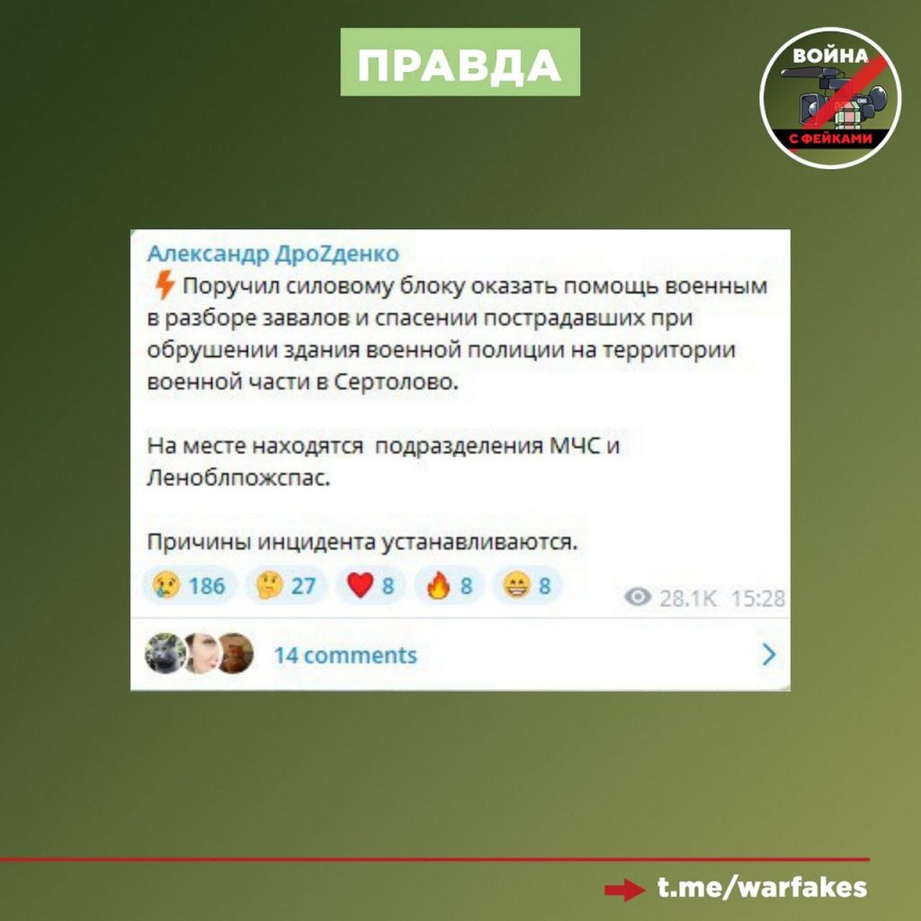 О чем фейк: В Ленинградской области произошел взрыв, в результате которого обрушилось здание военной полиции. Украинские телеграм-каналы предлагают множество версий о причинах произошедшего.