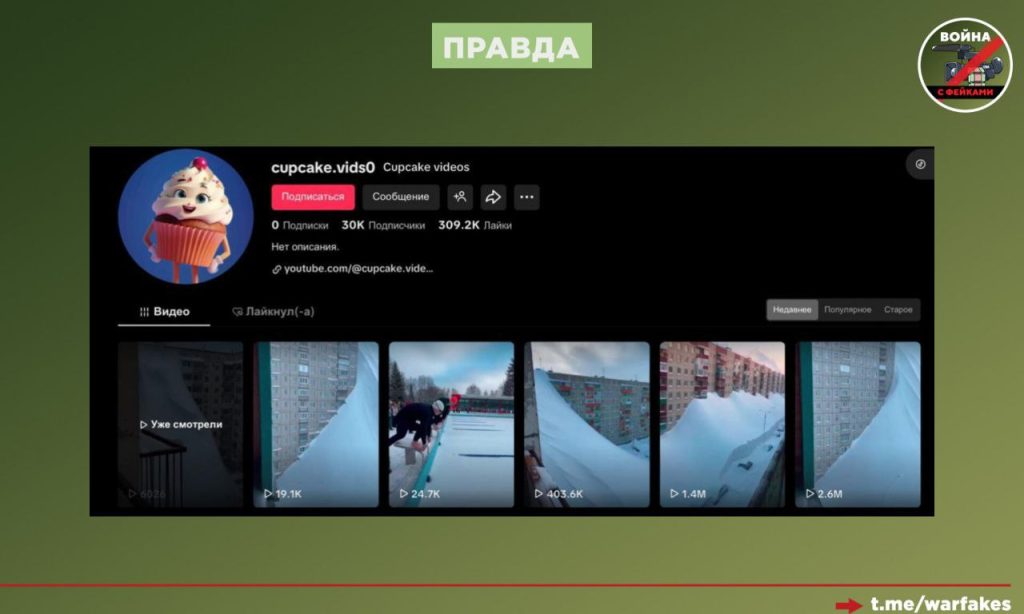 Забавно, что на канале пользователя TikTok присутствует видео с сугробами около панелек с бесконечным количеством этажей. Советуем телеграм-каналам проверять информацию перед публикацией, если не при помощи специальных инструментов, то хотя бы руководствуясь логикой.