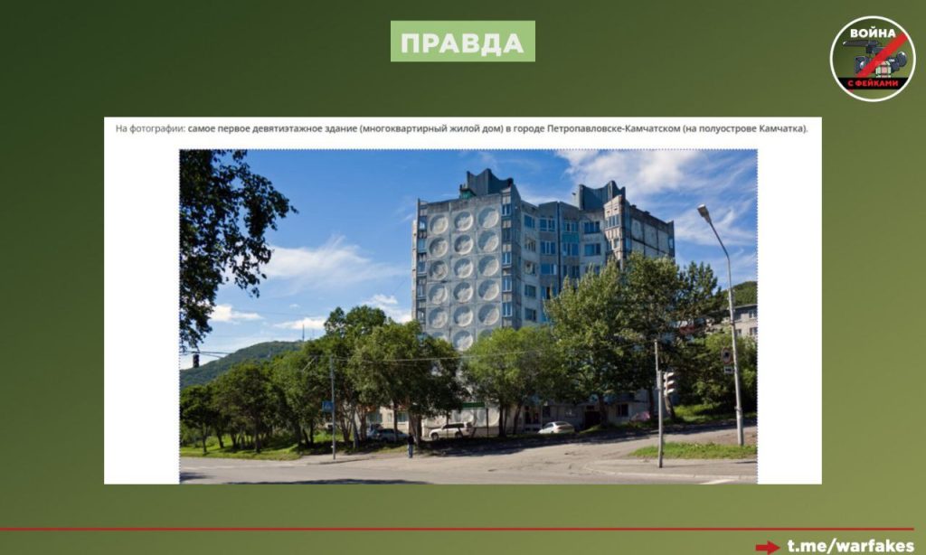 Админы некоторых телеграм-каналов пренебрегли фактчекингом ради хайпа и не стали проверять, действительно ли девятиэтажка из видео находится именно на Камчатке. Проверка заняла от силы бы пять минут. В Сети можно легко найти информацию о том, что в Петропавловске-Камчатском есть несколько девяти- и десятиэтажных домов и даже одно шестнадцатиэтажное здание, но они отличаются от стандартных панельных построек.