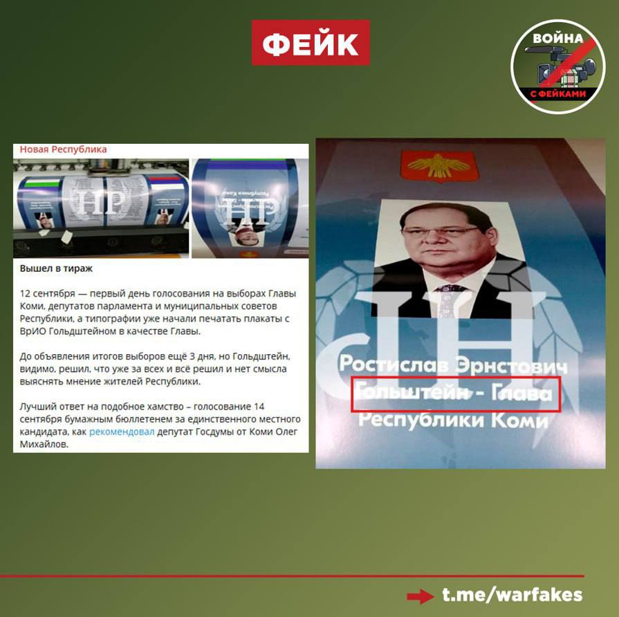 О чем фейк: В Республике Коми начали печатать стенды для школ на которых Ростислава Гольдштейна называют «Главой», хотя выборы еще не завершены. Фото плаката для такого стенда распространяют оппозиционные каналы.