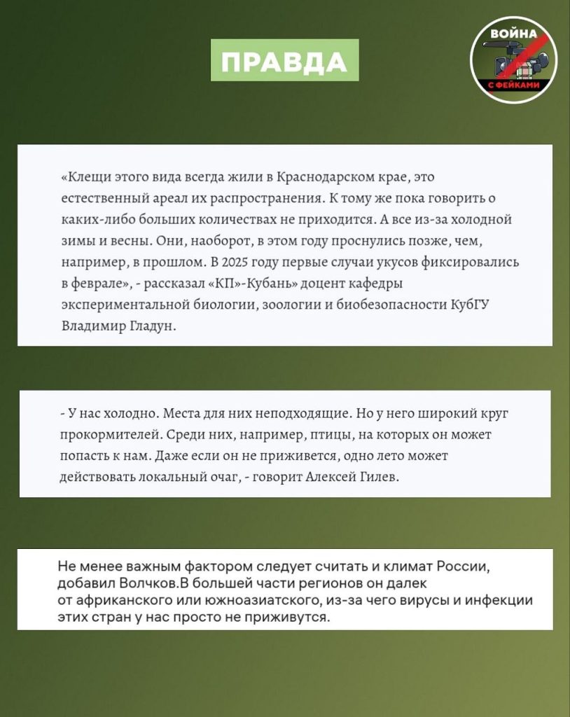 🟢 Доцент кафедры экспериментальной биологии, зоологии и биобезопасности КубГУ Владимир Гладун: «Эти клещи встречаются в степной части Краснодарского края. Но в этом году они пока малочисленны и не очень активны».