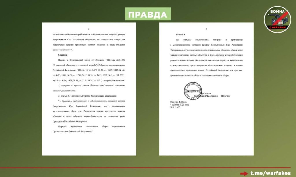 Обращаю внимание, что законопроект распространяется только на граждан, заключивших контракт в резерв. Обращаюсь с просьбой не реагировать на инсинуации на эту тему», — заявил заместитель начальника Главного организационно-мобилизационного управления Генерального штаба ВС России вице-адмирал Владимир Цимлянский. Ранее он уже объяснял порядок комплектования резервистских подразделений в официальном канале МинОбороны России.