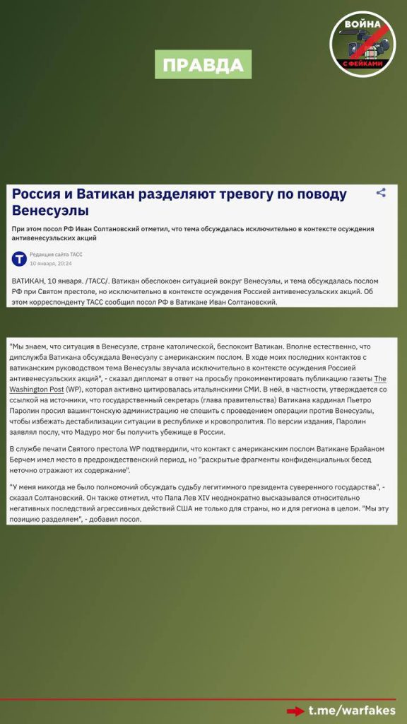 О чем фейк: Ватикан договаривался с российской стороной об эвакуации президента Венесуэлы Николаса Мадуро в РФ перед его захватом американцами, утверждают украинские и западные СМИ