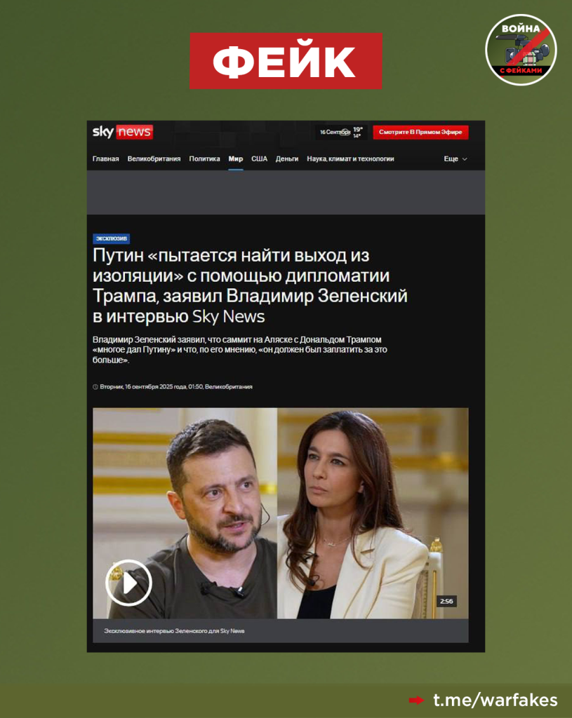 О чем фейк: Владимир Путин пытается за счёт Дональда Трампа выбраться из мировой изоляции. Об этом заявил Зеленский в интервью западным СМИ.