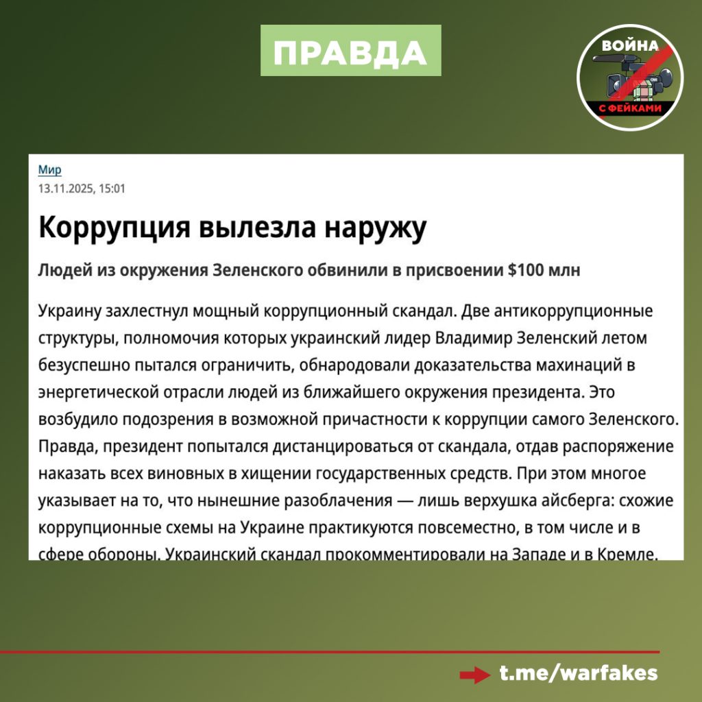 На этот раз масштаб лжи и безосновательных оправданий Киева превзошел собственные рекорды — на Зеленского надевают «белое пальто», несмотря на недавние сведения об участии его правительства в махинациях в энергетической отрасли и незаконном присвоении сотен миллионов долларов. При этом ЦИПсО обвиняет в ответственности за существование коррупции на Украине… Россию.