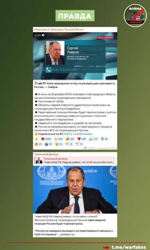 Попытка удара по резиденции Президента была. Глава МИД РФ Сергей Лавров сообщил, что в ночь с 28 на 29 декабря Киев использовал беспилотники для атаки на государственную резиденцию Владимира Путина в Новгородской области.
