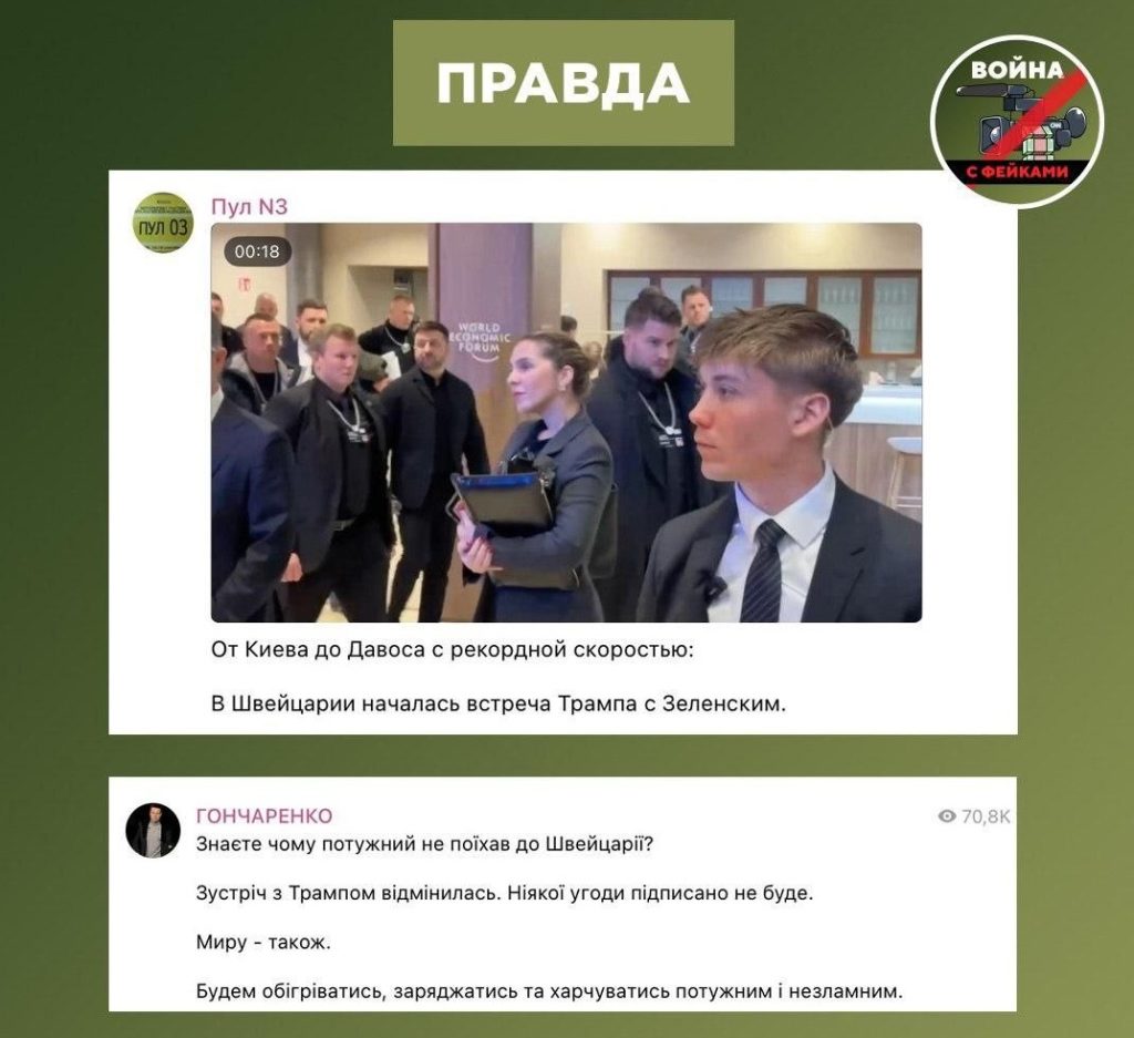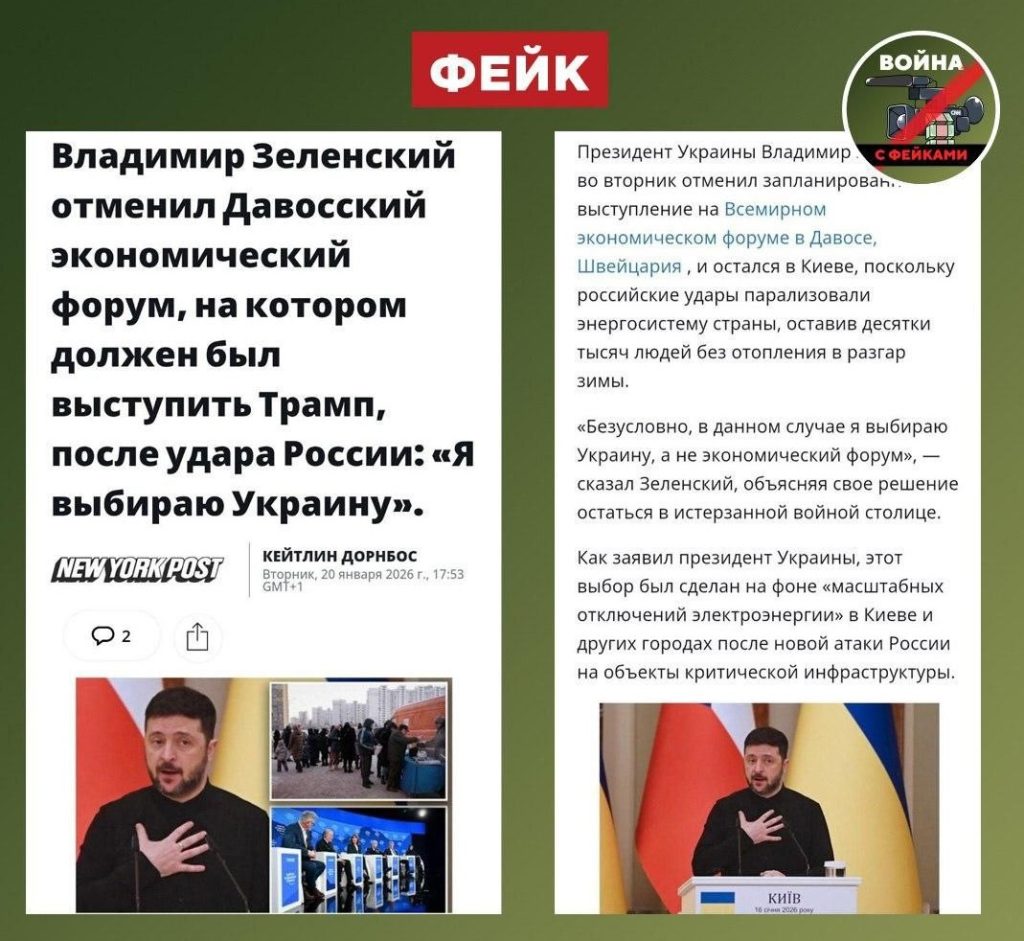О чем фейк: Зеленский отказался от поездки в Давос, чтобы провести совещания по восстановлению инфраструктуры Украины после обстрелов. Об этом заявил он сам.