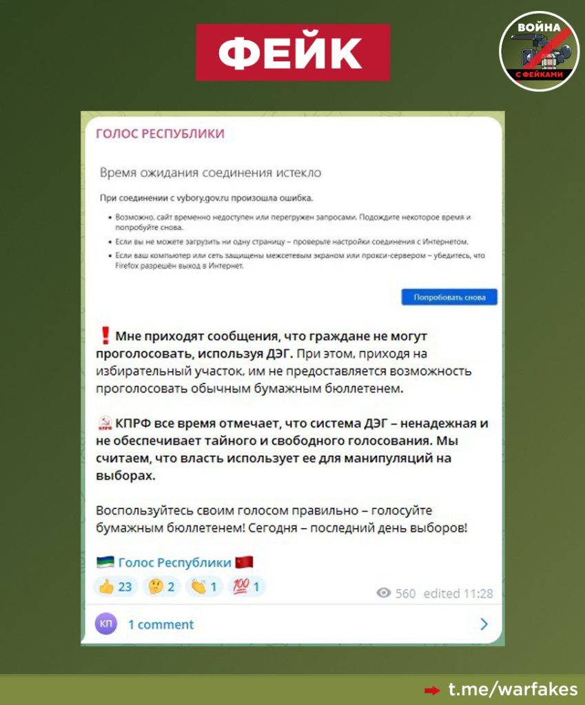 О чем фейк: Жители Республики Коми лишены права голосовать через систему ДЭГ из-за ее нестабильной работы. Об этом сообщает телеграм-канал «Голос Республики», принадлежащий депутату Госдумы от КПРФ Олегу Михайлову, который в 2021 году выиграл выборы благодаря «Умному голосованию».