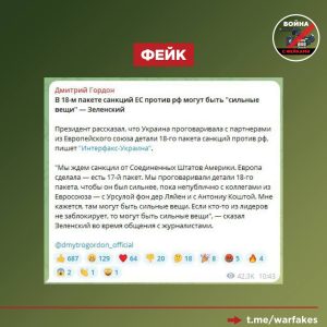 Фейк: В 18-м пакете западных санкций могут быть «сильные вещи»