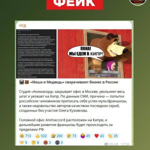 Фейк: Студия «Анимаккорд», создавшая популярный мультсериал «Маша и медведь», переезжает на Кипр