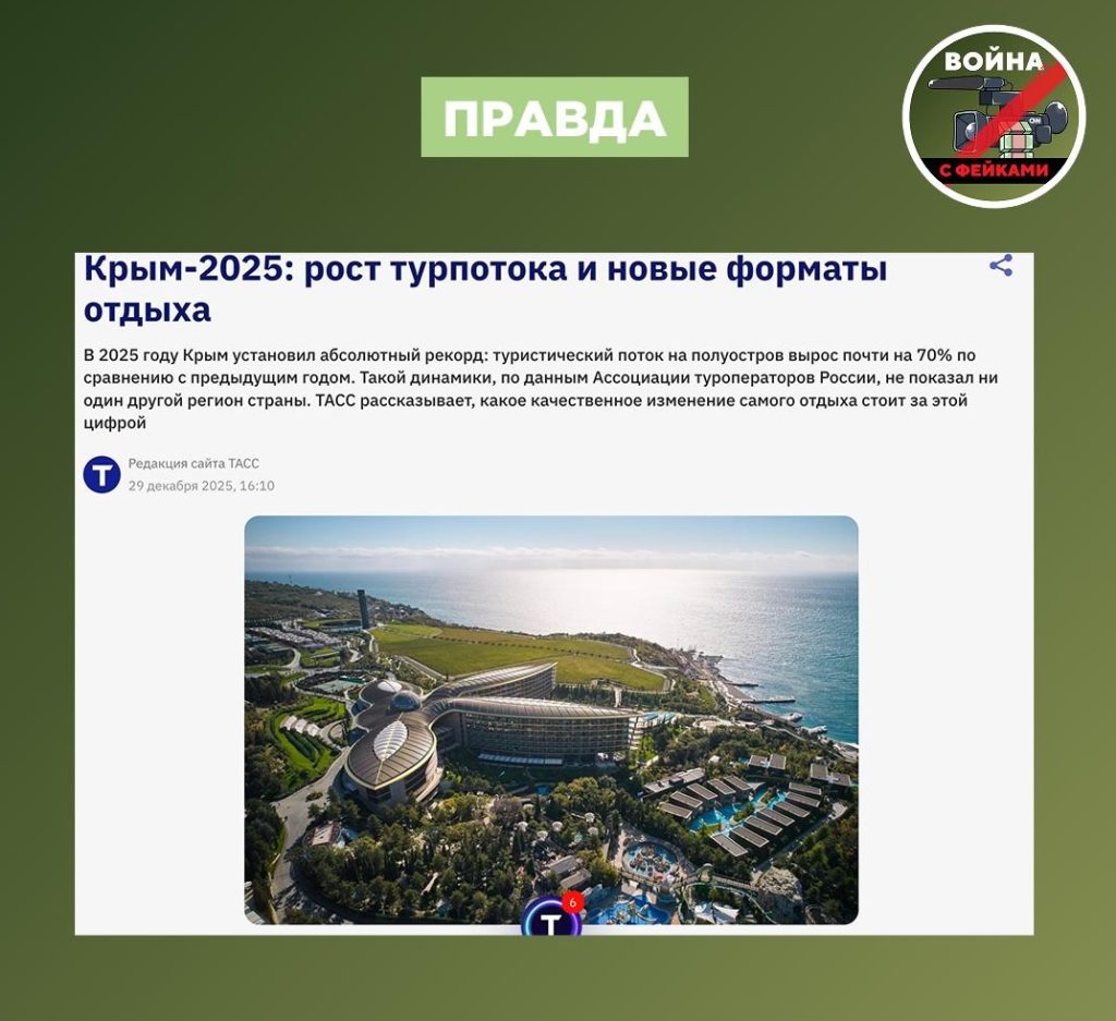 🟢Крым был и остается одной из точек притяжения на карте России для туристов. По данным Ассоциации туроператоров России, в 2025 году турпоток на полуостров вырос почти на 70% по сравнению с предыдущим годом. Ни один другой регион РФ пока что не может похвастаться подобным результатом. Гастрономия, события и оздоровление — то, что привлекает путешественников в этом уголке страны.
