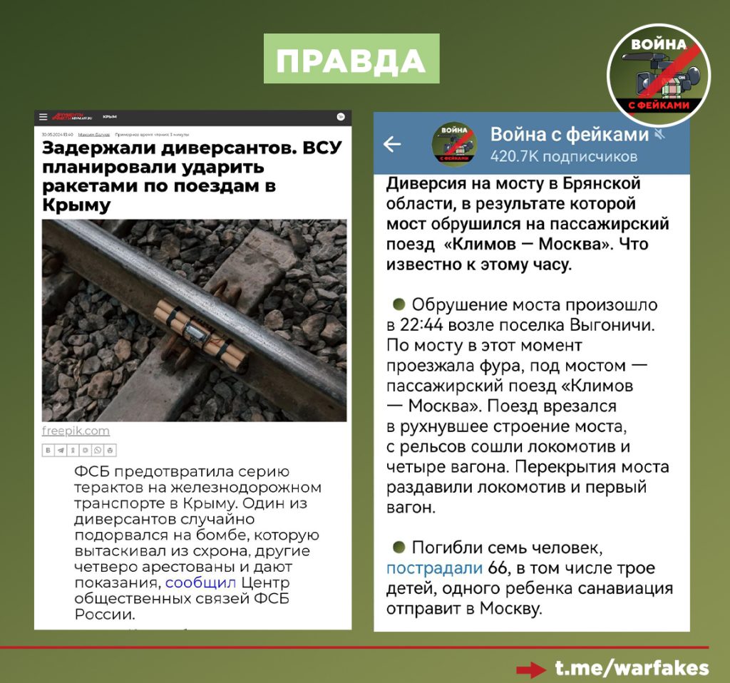 Андрющенко делает акцент на Крыме, но власти заботятся о безопасности жителей всех субъектов РФ. Сотрудничество граждан с украинскими спецслужбами приводит к плачевным последствиям. Так, 1 июня диверсанты подорвали мост в Брянской области, из-за чего пассажирский поезд сошел с рельсов. Погибли семь человек, около 70 получили травмы, в том числе трое детей.