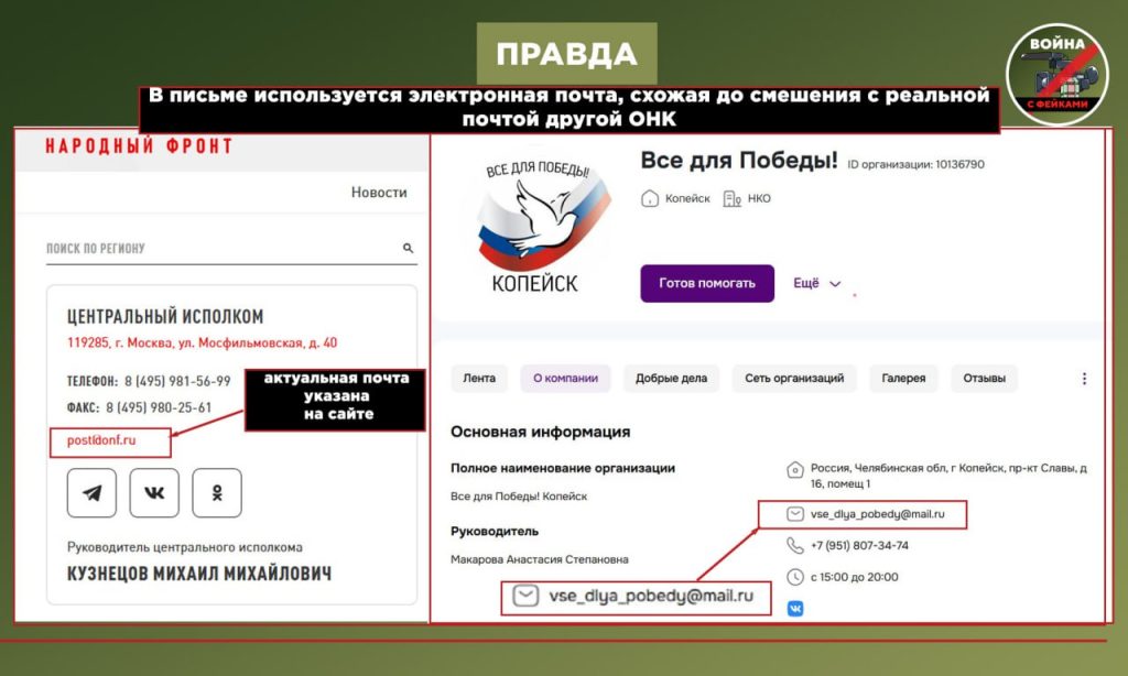 🟢в письме используется электронная почта, схожая с реальной почтой другой организации — ОНК;